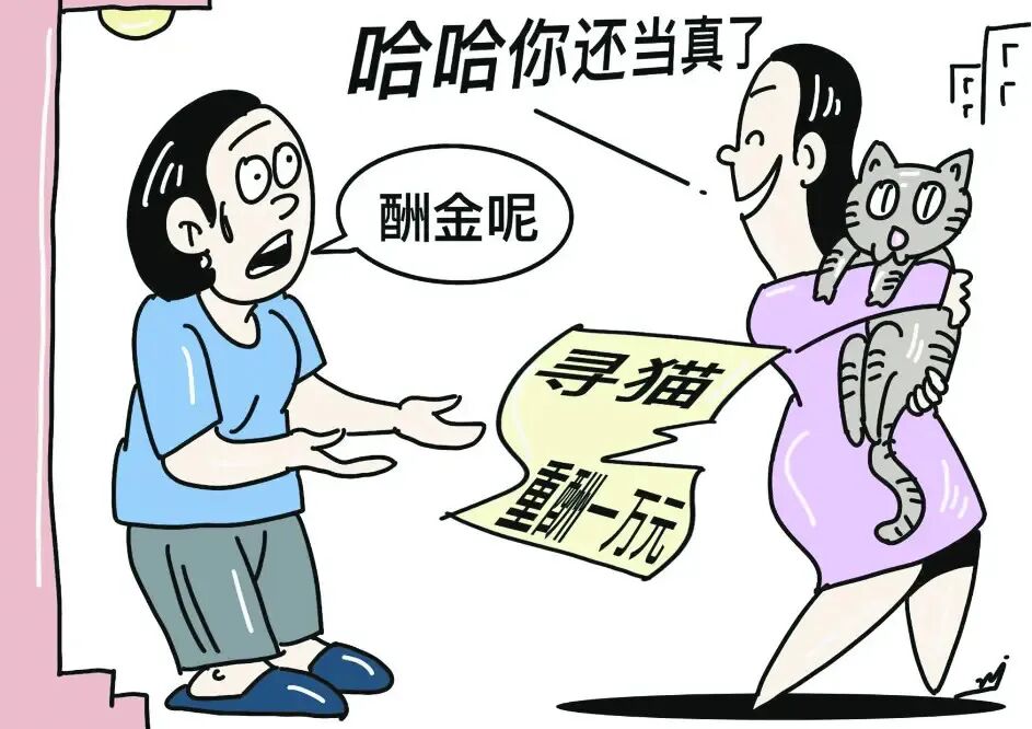 案例:张女士的爱猫不慎走失,心急之下,她在小区公告栏及社交媒体发布寻猫启事,并表示“如有好心人找回爱猫,愿支付一万元酬金!”次日,李女士看到启事后帮忙寻找,最终根据线索找到猫并联系张女士将猫送还。然而,当李女士要求兑现酬金时,张女士却以“只是随口说说”为由拒绝支付,甚至声称“没签合同,不算数”。那么张女士的寻猫启事是否具有法律效力?李女士能否拿到酬金?