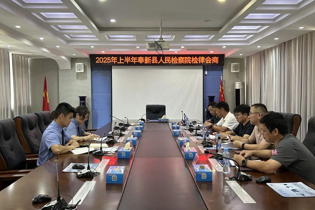 为进一步深化检律良性互动,保障律师执业权利,6月30日,奉新县人民检察院邀请县司法局、律师事务所代表,召开2025年上半年检律会商会议。