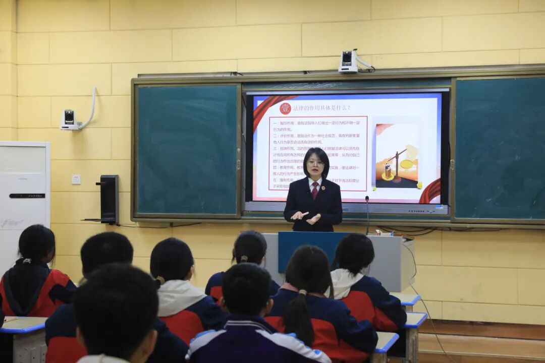 干警结合中学生的年龄和心理特点,以三个关于打架斗殴的法条为切入点,通过“案例分析+法律解读”的方式,着重讲解了打架行为所需承担的法律后果、犯罪成本及预防措施,并通过情景问答这一方式,强化学生的法律意识,提升其明辨是非、风险识别、情绪管理的能力。对于盗窃、强奸、校园欺凌等中学生群体易涉及的高频违法犯罪类型,干警还结合日常办理实案实例,及《中华人民共和国预防未成年人犯罪法》让听课学生直观感受到“恶习不改终酿大祸”的严重后果,从而深刻认识到“勿以恶小而为之,勿以善小而不为”这一道理。